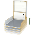 Praktiskt skötbord Endra El i björklaminat från Jeltec. Ett vägghängt skötbord som går att höja och sänka upp till 30 cm med hjälp av en knapp, vilket gör att du kan arbeta både stående och sittandes eller anpassa arbetshöjden utefter din längd.