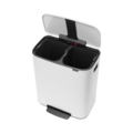 Pedalhink Bo 2X30 liter från Brabantia. Denna avfallshink rymmer stora mängder avfall med två innerhinkar. Öppnas med ett lätt tryck med foten och har ett mjukstängande lock med integrerade handtag.