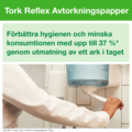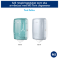 Tork Reflex Mini Aftørringspapir er et 1-lags papir med høj styrke og absorptionskapacitet, hvilket gør det godt at bruge både til at tørre overflader af og til at tørre hænderne med.