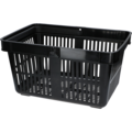 Stabelbar sort kundekurv i slidstærk polypropylenplast. Stabilt håndtag med låsbar fastgørelse. Passer fremragende i supermarkeder og andre større butikker, men også til arbejdspladser, hvor man måske har brug for at tage mange ting med sig på én gang.