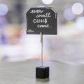 Skiltholder med krokodilleklemme på stang med fod. Giv kunderne en fremragende eksponering ved at bruge skiltholder med tavleplastskilt. Kan bruges som prisskilt.