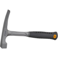 Murerhammer, smedet i et stykke med firkantet bane og lang slebet mejsel. Skaft af specialgummi for bedste greb uanset vejret. Hul til værktøjssikring.