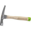 Murerhammer, smedet hoved med firkantet bane og lang slebet mejsel. Skaft i hickory med hul til værktøjssikring.