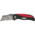 Display med 12 knive. Med blad der kan foldes ind. Udskiftelige blade betyder, at kniven ikke behøver at slibes. Knivsbladet bevæger sig ikke i bladholderen, hvilket betyder, at resultatet når man skærer bliver både sikrere og bedre. Trykplade til både sikrere og mere behagelig brug. Bladmagasin i håndtaget inkl. 5 stk. originale blade. Clips til placering i bælte eller lomme.