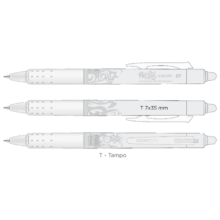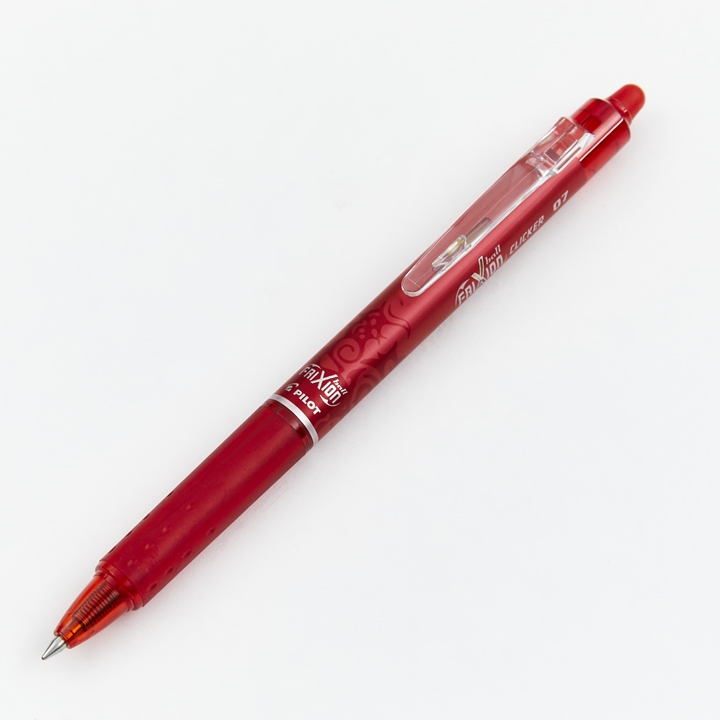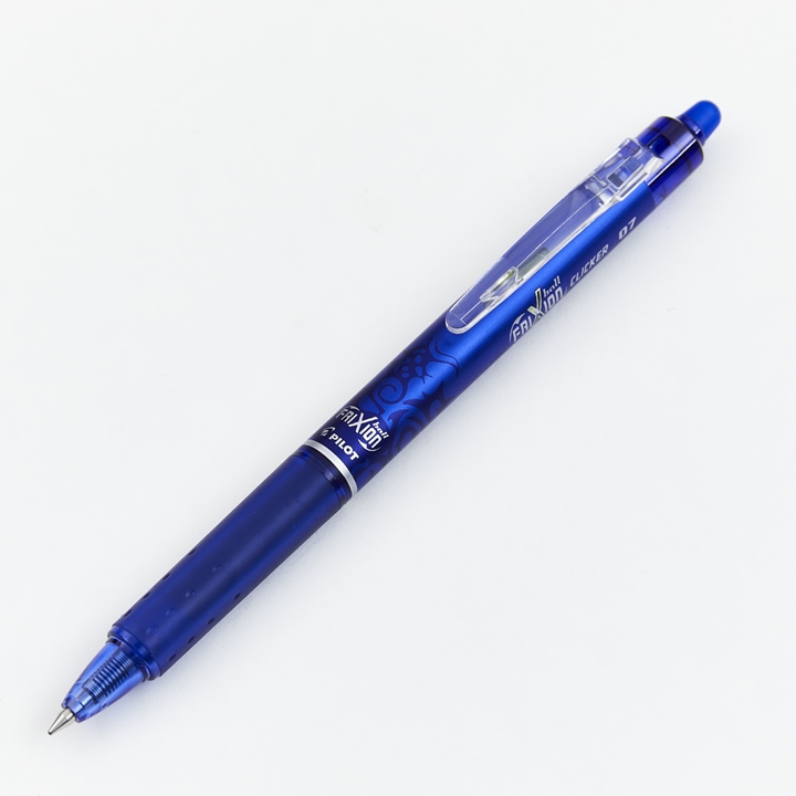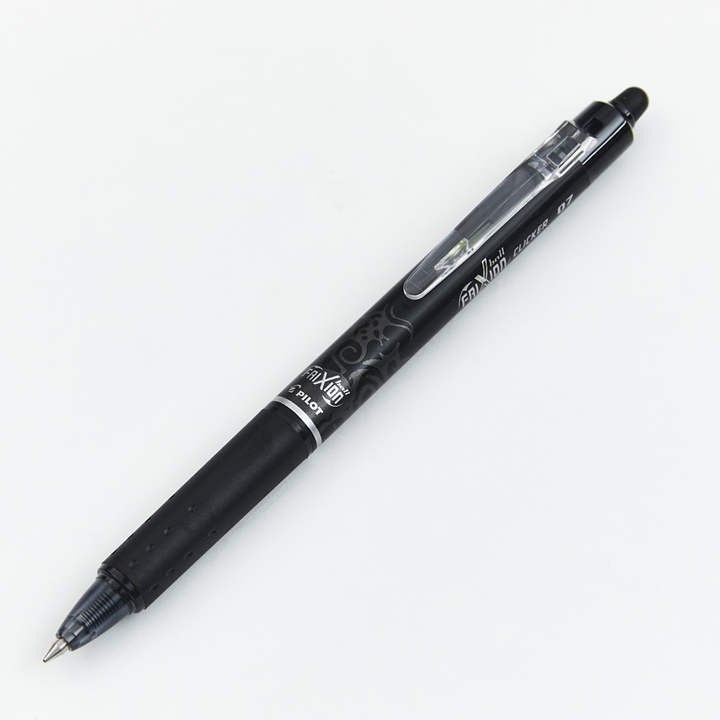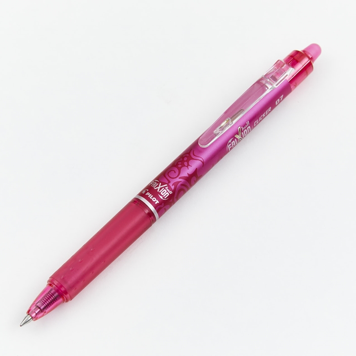 Pilot's Frixion Clicker is a popular ink pen with erasable ink. With a click function on the clip, you activate the writing. The unique ink becomes permanent after 2 years, while the indestructible eraser tip is based on friction. Choose your color, the ink matches the pen body, and explore a new era of writing.