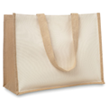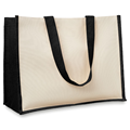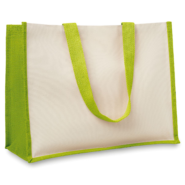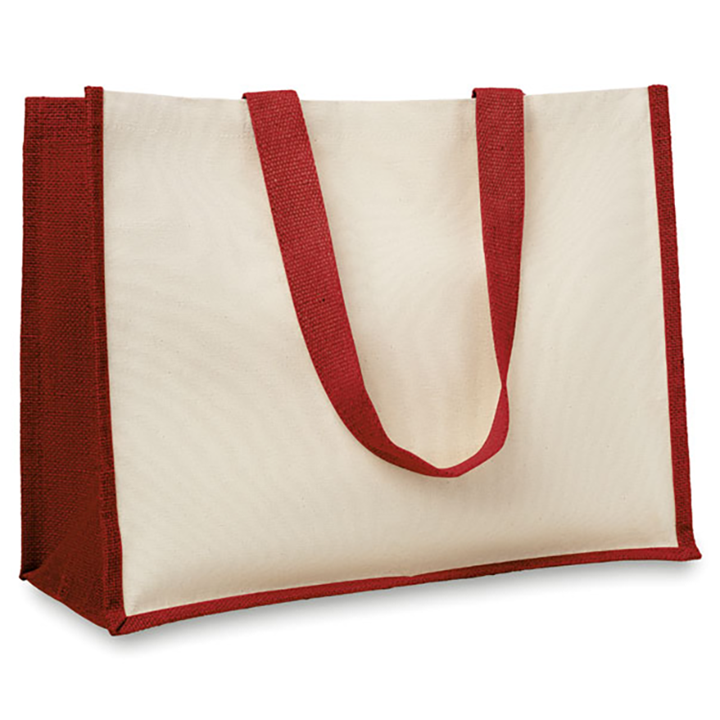 Campo De Fiori combines rustic jute with a canvas front – perfect for brands that want to stand out with a natural look. The laminated interior adds extra sturdiness, while the flat base provides both form and function. A spacious bag that’s ideal for both shopping and a day at the beach. The long handles make it easy to carry, and the coloured details stylishly frame your message.