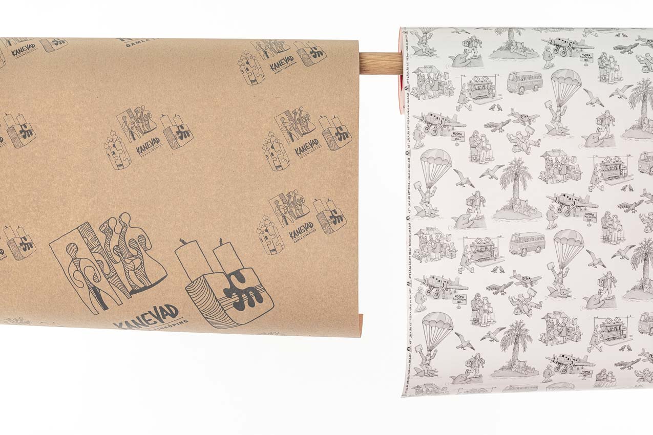 We can print nice products for gift wrapping with your logo on it. Choose below from gift paper, wrapping paper, ribbons and labels.