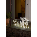 Reindeer with acrylic sleigh, 96 warm white LED lights, and 42 cm from Konst Smide. This stylish Christmas decoration is made of high-quality material and is equipped with an IP rating of IP44, making it suitable for outdoor use. You can place it at the entrance or in the garden to illuminate and spread Christmas joy.