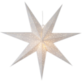 Beautiful white paper star with a lovely pattern. The star is 100 cm tall and has space for a candle. It is placed in a window where it emits a wonderful glow in the dark.
