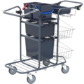 Medium Hospital Hygiene is a cleaning trolley that can be configured in 8 different variations. The lockable, door-equipped method trolley can be adapted into a cleaning trolley with space for multiple waste bags or even into a trolley with a mop press when needed.