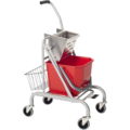 Praktisk och smidig Svabbvagn med hand och fotpress som passar till dom allra flesta utrymmen. Vagnen är försedd med hink, rostfri press och förvaringskorg.