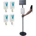 Smart golvställ med sensordispenser för tvål och handdesinfektion. HYGIENSTATION PRO. KOMPLETT MED SKYLT från Hykab kommer med 4 st förpackningar av Alcogel 70 % som räcker för mer än 4 000 st doseringar. Inklusive skylt i A4 format.