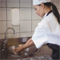 Hygieniskt slutet dispensersystem anpassat för montering på vägg eller golvställ. DISPENSER MANUELL VIT från Hykab rymmer 1 liter tvål eller handdesinfektion och är mycket smidig att hantera och rengöra.