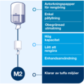 The Tork M2 Dispenser is a white dispenser that provides a smart solution for those who want to dry their hands as well as wipe and clean surfaces.