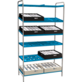 Användarvänligt rangerställ för förvaring av rena koppar och glas i diskkorgar SERVERINGSSTÄLL 50CM KORG från Diskomat har fem stadiga hyllplan varar två är snedställda för lättare åtkomst. Passar utmärkt för det professionella storköket.