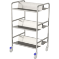 Kasettvagn 3 plan från Diskomat. Praktisk kasettvagn i rostfritt stål med plats för upp till 12 tallrikskasetter. Ett effektivt och ergonomiskt val vid lagring och transport av porslin i större mängder som samtidigt förebygger skador på porslinet.