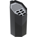 Powder-coated wall-mounted ashtray without a lid that is easy to tilt forward and empty. Collects ash and cigarette butts. Suitable for all public and private environments.