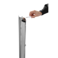 Stainless steel floor model ashtray from Hendi. The cup has a very robust design and can be mounted on the floor or stand freely. It is easy to empty; the upper part can be unlocked with a key and then emptied.