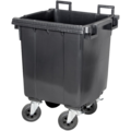 Stort avfallskärl 400L på fyra hjul från San Sac. Soptunnan är tillverkad i plast och de lättrullade och vibrationsdämpande gummihjulen med glidlager tillkommer monterade och klara. Lock till soptunnan säljs separat.