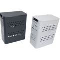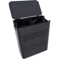 Avfallstunna Patrik Grå från Hykab med lock. Har säckhållare för 2 st 60 L avfallssäckar som kan användas till sortering. Rullar på hjul för att lätt kunna flyttas men kan även monteras upp på vägg.