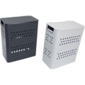 Avfallstunna Patrik Vit från Hykab. Har ett lock på gångjärn och säckhållare som rymmer 2 st 60 L avfallssäckar. Avfallstunnan rullar på hjul för att lätt kunna flyttas men kan även monteras upp på vägg.