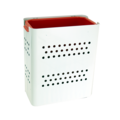 Vit öppen Avfallstunna Patrik med rött kärl från Hykab. Rymmer 60 L och rullar på hjul för att lätt kunna flyttas men kan även monteras upp på en vägg.