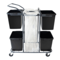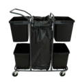 Sorteringsvagn i grå färg från Hykab. Vagnen har plats för fyra stycken 25 l plastkärl och en säckhållare som gör det lättare att källsortera olika material. Plastkärl ingår ej.