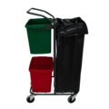 Sorteringsvagn i grå färg från Hykab. Vagnen har plats för två stycken 25 l plastkärl och en säckhållare som gör det lättare att källsortera olika material. Plastkärlen säljes separat.