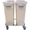 Waste trolley 60 liters from Diskomat in a double set. Surface-efficient and compact waste bin on wheels that simplifies waste sorting at your workplace. The high edges of the trolley lock the vessel and make it easy and safe to move.