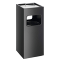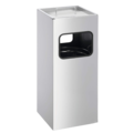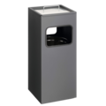 "Practical 2-in-1 solution - combined trash can with ashtray. 17-liter trash can made of stainless steel with a removable inner bucket featuring a handle that makes it easy to empty and clean. Removable aluminum ashtray filled with sand and equipped with a mesh insert that can be lifted out of the sand when the ashtray needs to be emptied of cigarette butts. 1.5 kg of sand is included. Opening for waste from two sides. Anti-slip protection on the underside. Dimensions of the ashtray: 24 x 5 x 24 (WxHxD), holds 2 liters. Dimensions of the inner bucket: Ø 22 cm, height 38 cm. Total dimensions: 25 x 62 x 25 (WxHxD). Dimensions of the waste opening: 18 x 13 cm (WxH)."