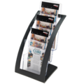 Brochure Stand 3-compartment, 1/3 A4 A nicely designed stand that is suitable for literature, brochures or for magazines. The place is made of black durable plastic with crystal clear pockets that give your literature complete visibility.