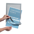 • Self-adhesive magnet frame for information in portrait or landscape format. Opening front with a frame of magnets and a self-adhesive back.