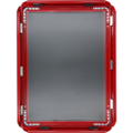 Wall frame in aluminum profile with a red snap frame (32mm). To install the frame, there are 4 screws and plugs for attachment.