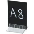 Sign holder straight clear, suitable for smaller signs that are to be placed on a table, on top of a charcuterie counter, or similar.