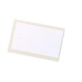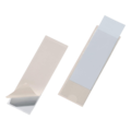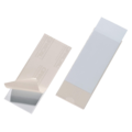 Self-adhesive plastic pocket with an opening on one short side.