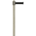 Avspärrningsstolpe med svart band från Securit. Stolpen är av polerat rostfritt stål med fyrvägsanslutning och infällbart nylonband. Använd den till att arrangera köer eller spärra av områden.