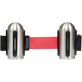 Avspärrningsband i röd färg från Securit. Vägg monterad dosa med ett infällbart nylonband och fyrvägsanslutning. Använd den till att arrangera köer eller spärra av områden.