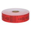 Red 2-part wardrobe ticket 501-1000. Solid-colored wardrobe tickets with classic numbering. The tickets have two parts - at the top a ticket with a hole for a hanger, at the bottom a "receipt" ticket for the guest.