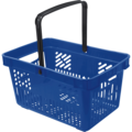 Blue shopping basket made of durable polypropylene plastic. A stackable shopping basket with a stable handle and a lockable attachment. Perfectly suited for use in shops, warehouses, offices, etc.