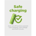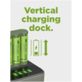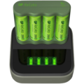 Battery charger B421 from GP Batteries. Compact USB-powered battery charger with space for four AA batteries. LED indicators show the charging level, and when fully charged, the charger turns off for increased safety. Charging station included.