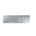 The corded KC 6000 SLIM FOR MAC is the streamlined keyboard alternative for avid writers using Mac! The chiclet design keyboard has 12 functions that make it easy to use on your Mac every day. Frequently used functions (such as screen lock, screen brightness, mission control, and media control) can be accessed with a single keystroke. Compact dimensions leave enough space on your desk for other equipment. The scissor mechanism is practically silent and provides an excellent typing experience and a long service life. The numeric keypad means the keyboard is well prepared for frequent number entries. A built-in metal plate keeps the keyboard stable and non-slip on your desk. If you prefer a steeper angle when typing, the angle of inclination of the KC 6000 SLIM FOR MAC can be adjusted with the four rubber feet supplied. A flexible cable allows connection under the desk. The CHERRY KC 6000 SLIM FOR MAC with silver housing and white keys can be used on all end devices with USB-A connection and MAC.