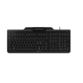 Lasting reliability. Timeless elegance. Intelligent concept. The CHERRY KC 1000 SC combines the benefits of a classic CHERRY office keyboard with the security-related requirements of a security keyboard. It is a smart, wired security keyboard with an integrated chip card terminal, allowing for secure PIN entry. It features a PC/SC smartcard reader and supports protocols: T=0, T=1, S=8, S=9, S=10. It is CCID compatible and can read/write ISO 7816 compliant smartcards. The flat design includes a low smart card contacting unit and satisfies requirements defined by FIPS-201. The German version has a DIN/GS compliant layout and offers driver support for Windows/MacOS-X/Linux. The smart card module can be operated with one hand. The German version complies with BGI 650 guidance for ergonomics and has been awarded the "Blaue Engel" environmental seal. The smart card reader is mechanical, with a hardware interface of USB. It has agency approvals for chip-card protocols: T=0, T=1, S=8, S=9, S=10. The contact is a mechanical swipe reader, and the software interface includes CT-Api and PC/SC. It has approximately 100,000 mating cycles and is compatible.
