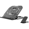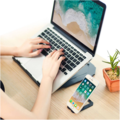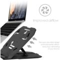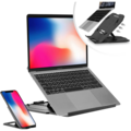 Portable 2-in-1 aluminum laptop stand that elevates your computer, resulting in increased airflow and an ergonomic work environment. Comes with a smartphone holder for simultaneous support of both your laptop and mobile phone. The base can rotate 360 degrees.