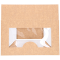 Light brown bakery box with windows. Suitable for pastries, baked goods, and sandwiches. The guest can see the product through the window of the bakery box.