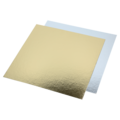 Square reversible cake trays in a foil carton. One side is silver, and the other is gold. Dimensions: 30 x 30 cm.
