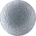 Round reversible cake tray in foil cardboard. One side is silver, and the other is gold. Dimensions: 34 cm.