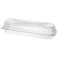 Baguette form in clear PET plastic with a pendant lid. Great for display and takeout for baguettes and sandwiches.