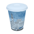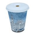 White flat wood fiber lids with cross holes made from PFAS-free raw material. The lids fit 30, 36, 46, 48, and 50 cl paper cups.