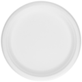White disposable flat plates made from bagasse, 26 cm. Excellent plates for smooth serving at large events.