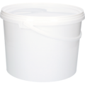 White neutral plastic buckets with tightly sealing lids that are approved for contact with food. Perfect for storing and pickling food items such as sauces, dressings, vegetables, fish, etc.